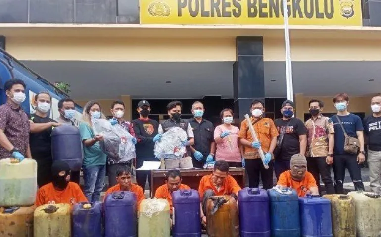 10 Ton Solar Oplosan Disita, Polisi Ringkus Sindikat Pengoplos BBM di Bengkulu
