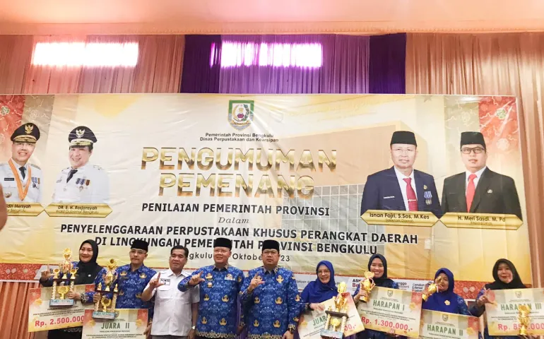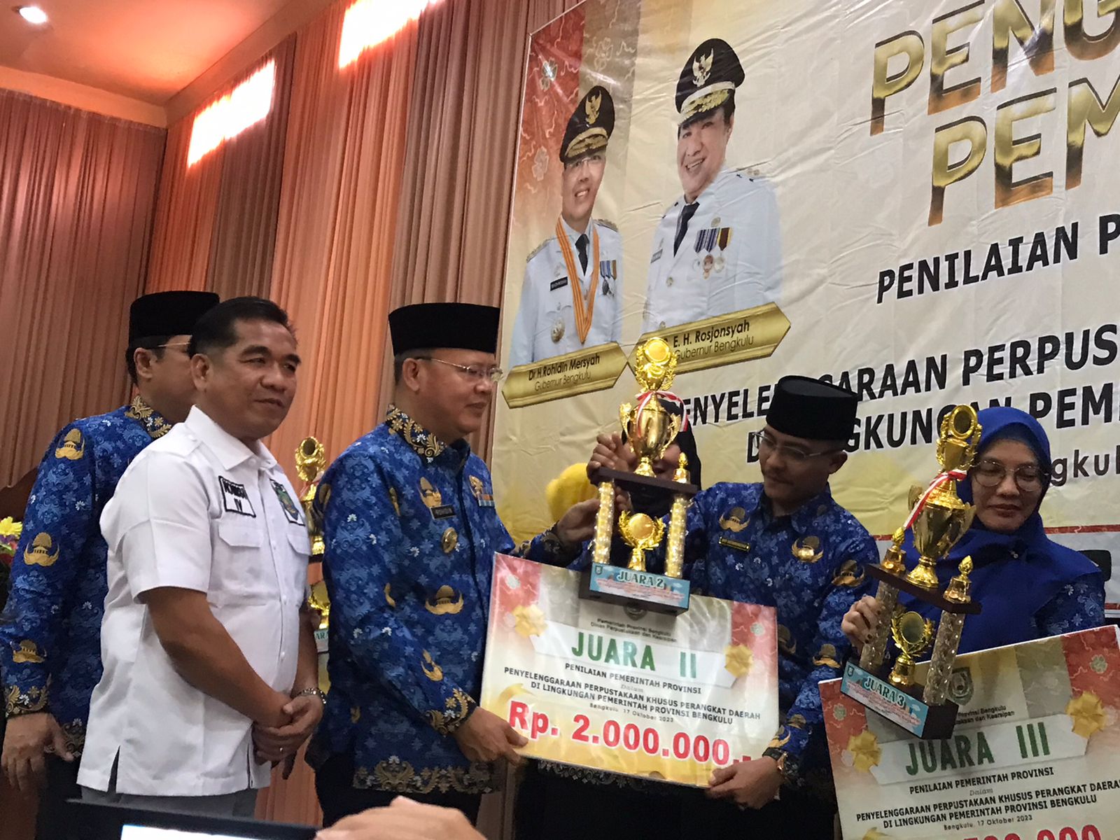 Bengkulu, Siberspace.id -- Gubernur Bengkulu Rohidin Mersyah menghadiri acara Pengumuman Pemenang Penilaian dalam Penyelenggaraan Perpustakaan Khusus Perangkat daerah di Lingkungan Pemerintah Provinsi Bengkulu di Hotel Bougenville. Selasa (17/10/2023).