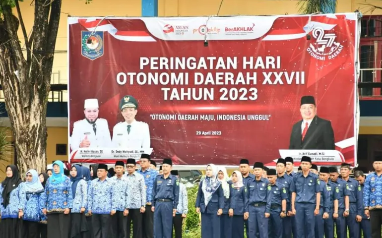 Bengkulu, Siberspace.id - Pemerintah Kota (Pemkot) menggelar Upacara Peringatan Hari Otonomi Daerah ke – XXVII Tahun 2023.