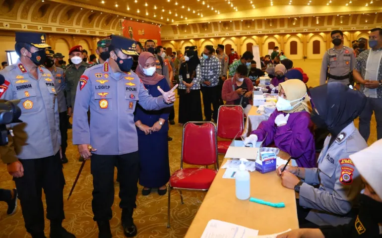 Selain meninjau vaksinasi, Sigit juga memberikan pengarahan kepada seluruh wilayah untuk terus melakukan akselerasi vaksinasi serta mengoptimalkan penanganan dan pengendalian Pandemi Covid-19, secara virtual.(SS001)