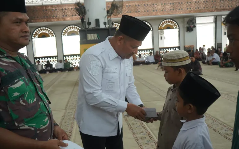 Pada kesempatan tersebut, Wakil Bupati Asahan juga menyerahkan santunan kepada anak yatim. (Prasetyo)