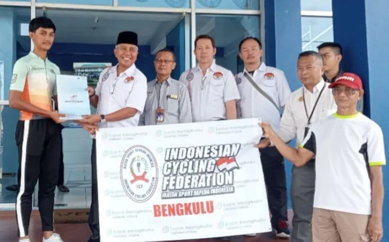 Bengkulu, Siberspace.id -- Rektor Universitas Prof. Dr. Hazairin, S.H. (Unihaz) Bengkulu bersama Ikatan Sport Sepeda Indonesia (ISSI) Bengkulu melaksanakan pelepasan keberangkatan 11 orang atlet cabang olahraga (cabor) Sepeda menuju pelaksanaan Pra Pekan Olahraga Nasional (PON) yang akan diselenggarakan di Lubuk Linggau. Selasa (2128/23)