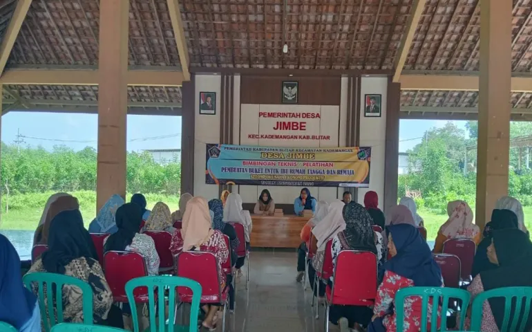 Blitar - Siberspace.id -- Pemerintah Desa (Pemdes) Jimbe, Kecamatan Kademangan, Kabupaten Blitar, menggelar pelatihan pembuatan bucket bagi ibu-ibu PKK. Pelatihan ini bertujuan memberikan wawasan dan keterampilan praktis dalam membuat bucket yang layak dipasarkan, sekaligus membuka peluang tambahan penghasilan.