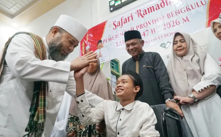Siberspace.id - Safari Ramadan Pemerintah Provinsi Bengkulu kembali menyapa masyarakat Kabupaten Lebong. Kali ini, Gubernur Bengkulu, Helmi Hasan, melaksanakan Safari Ramadan di Masjid Al Amin, Desa Sukabumi, Kecamatan Lebong Sakti, Jumat (27/2).