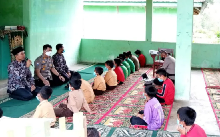 Bengkulu Tengah, Siberspace.id – Sambangi MIN Assalam Desa Lagan Bungin Kecamatan Semidang Lagan, Sat Binmas Polres Bengkulu Tengah (Benteng) pagi hari kemarin Kamis (03/02) sampaikan binluh (bimbingan dan penyuluhan) tentang hamrkamtibmas dan prokes disertai vaksinasi.