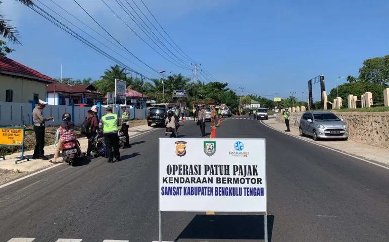 Bengkulu Tengah, Siberspace.id -- Balai Pengelola Transportasi Darat bersama Dishub dan Satlantas Polres Benteng menggelar razia kendaraan bermotor (Ranmor)  didepan gerbang tol pintu masuk Taba Penanjung. Rabu (01/10/23).