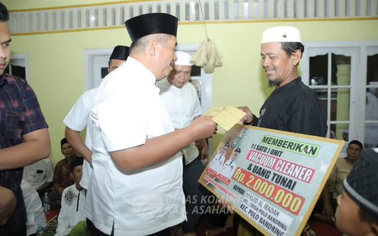 Kegiatan dirangkai dengan penyerahan bantuan kepada BKM berupa uang tunai Rp 2.000.000 dan vacuum cleaner sekaligus penyantunan kepada anak yatim dan kaum dhuafa oleh Bupati Asahan.