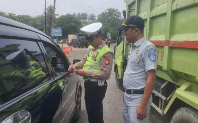 Bengkulu Utara, Siberspace.id -- Satlantas Polres Bengkulu Utara beserta Jasa Raharja Bengkulu, Balai Pengelolaan Transportasi Darat Kelas III Bengkulu, Dinas Perhubungan Kab Bengkulu Utara, dan Polisi Militer gelar razia gabungan di Jln. Lintas Barat Bengkulu-Muko Muko Desa Tepi Laut Kecamatan Air Napal Kabupaten Bengkulu Utara. Sabtu (4/11/2023)