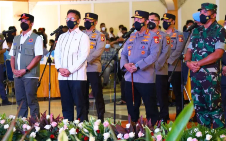 JAKARTA, Siberspace.id – Menteri Kesehatan Budi Gunadi Sadikin, Kapolri Jenderal Listyo Sigit Prabowo, Kepala BNPB Letjen TNI Suharyanto dan Kasum TNI Letjen Eko Margiyono hari ini Kamis (3/2/2022) melakukan peninjauan akselerasi percepatan vaksinasi serentak se-Indonesia dengan hadir secara langsung di Balairung Budi Utomo, Hotel Bumi Wiyata, Depok, Jawa Barat.