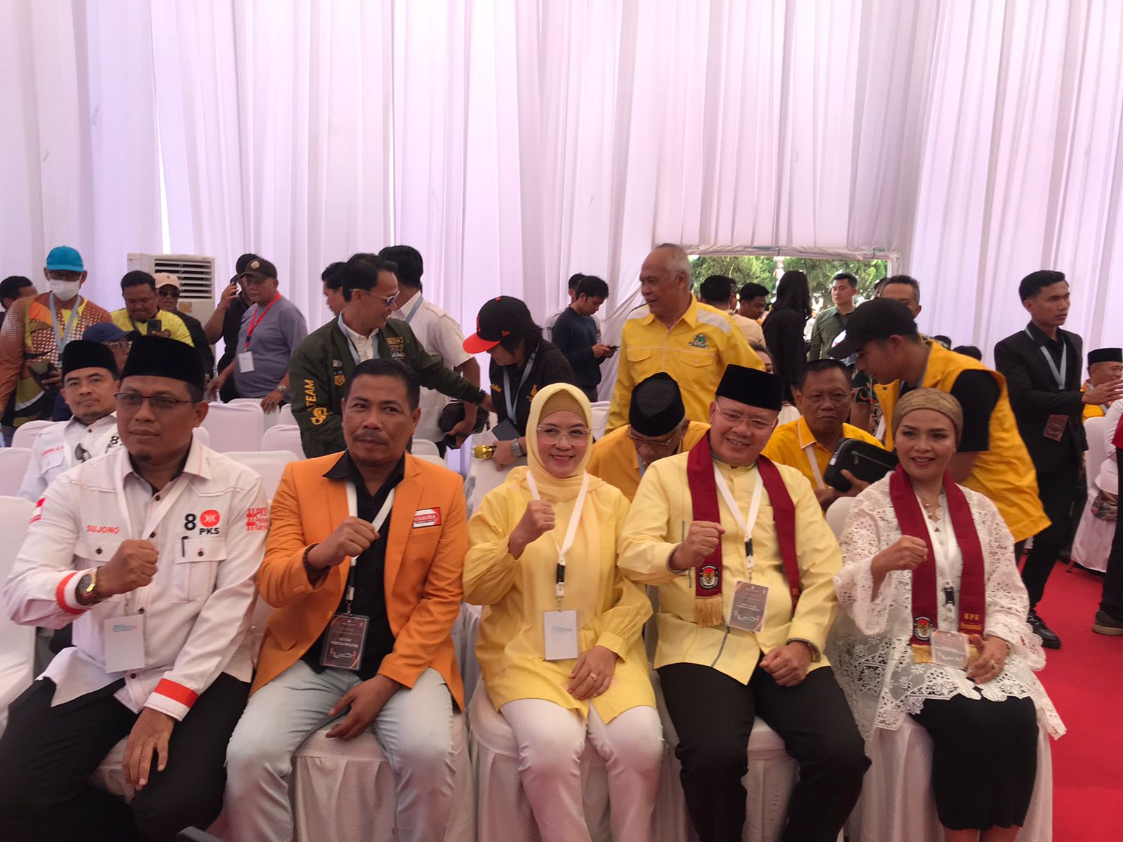 Pasangan yang didukung oleh empat partai politik, yakni Golkar, Hanura, PPP, dan PKS, setiba di KPU langsung memberikan dukungan surat B1-KWK.