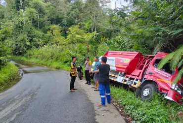 Truk Tangki Pertamina Terperosok di Jalan Lintas Lebong