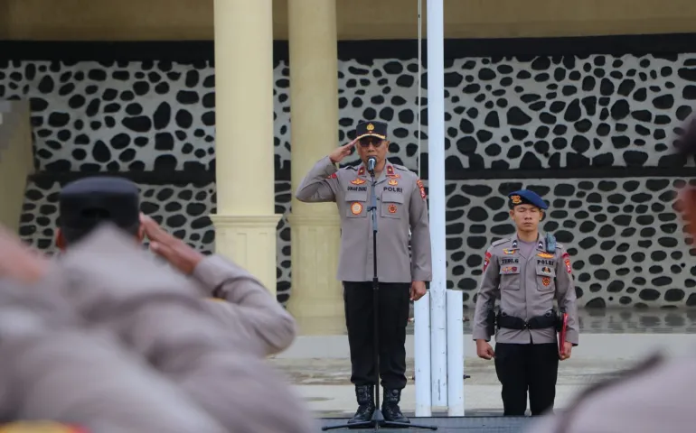 Bengkulu, Siberspace.id - Memimpin pelaksanaan apel pagi hari ini Senin (08/05) yang berlangsung dilapangan Apel Rekonfu, Wakapolda Bengkulu Brigjen Pol Drs Umardani, M.Si, menegaskan atas nama pimpinan memberikan ucapan terimakasih khususnya kepada personel yang terlibat dalam Operasi Terpusat Ketupat Nala 2023.