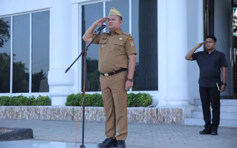 Siberspace.id - Wakil Bupati Asahan, Rianto SH MAP, memimpin Apel Gabungan perdana di awal Tahun 2026 yang berlangsung di Halaman Kantor Bupati Asahan, Senin (05/01/2026). Apel ini diikuti oleh Sekretaris Daerah Kabupaten Asahan, para Asisten, OPD, Camat Kota Kisaran Barat, Camat Kota Kisaran Timur, serta ASN di Lingkungan Pemerintah Kabupaten Asahan.